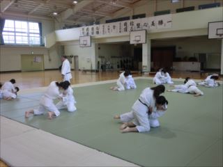 特に基本動作と礼法として、構え・体さばき(受け身や固め技等)を学んでいます。