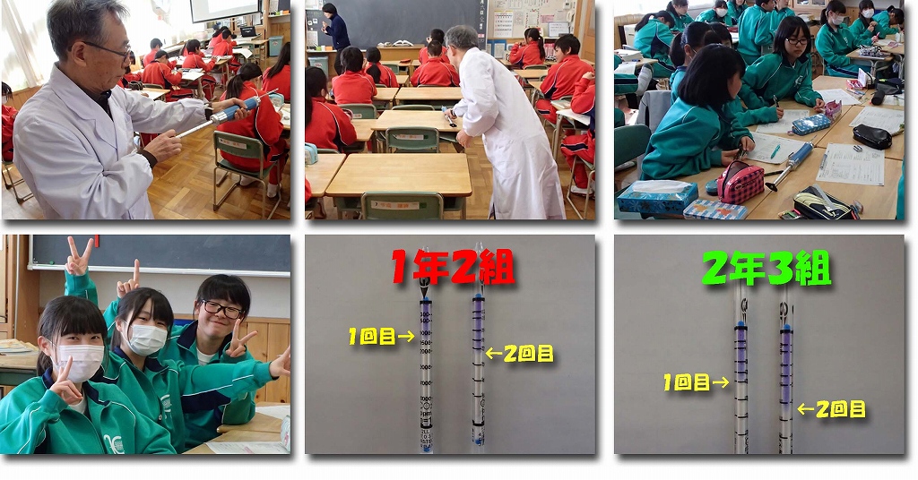 今日は学校薬剤師の須賀先生による環境衛生検査が行われました。空気の検査で、二酸化炭素を授業開始直後と授業終了前の2回測定し、1時間の授業でどのくらい二酸化炭素が増えているかを調べました。2年3組の教室では、活発な話合い!?が行われていたため、とても二酸化炭素の量が増えていました。1時間で二酸化炭素の量がだいぶ増えますので、授業終了後には必ず換気をしてほしいと思います。