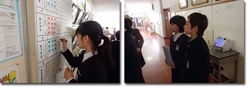 テストがありましたが、今日の健康観察もしっかりと行ってくれました。1年生は二人で来て、書き方等の確認も行っていました。1年生が素晴らしい活躍を見せています!