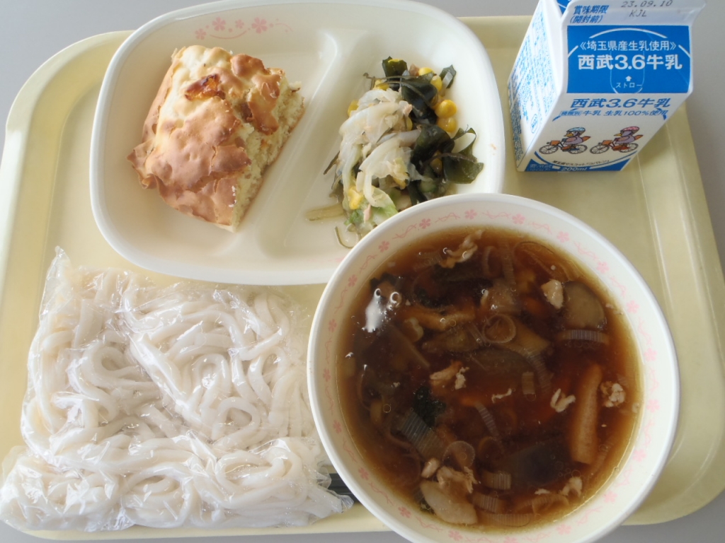 ⭐︎牛乳 ⭐︎きつねうどん ⭐︎マーラーカオ ⭐︎小松菜とじゃこの炒り煮