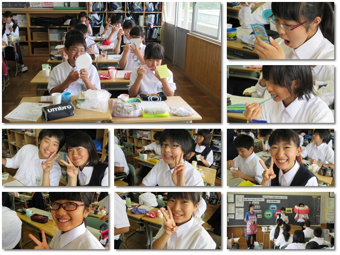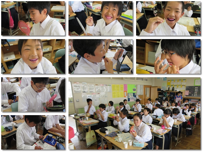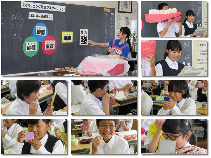 今日は1年2組で歯と口の健康に関する授業を行いました。保健委員2人が練習からとてもよく頑張ってくれました!