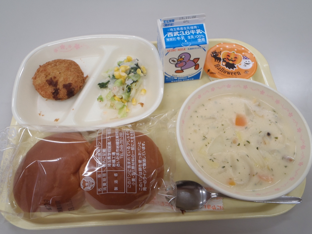 南瓜コロッケ クラムチャウダー(豆乳) パンプキンプリン