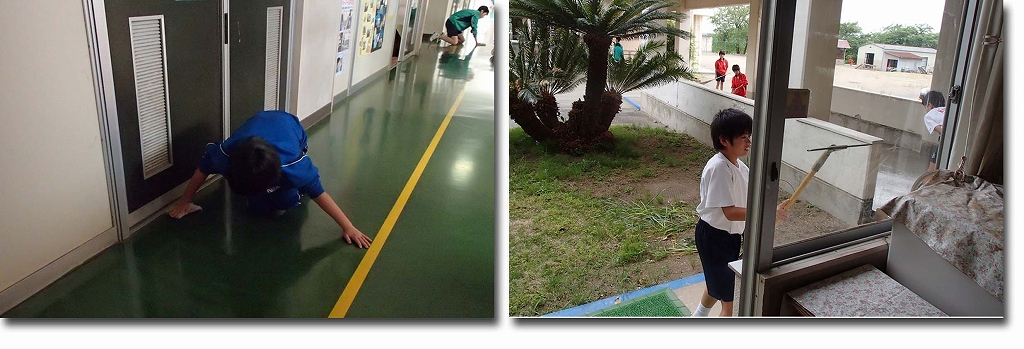 今回の保健室掃除は窓掃除も行っています。また、清掃開始が早く、素早く床ふきをはじめています。保健室前廊下はすぐに砂ぼこりで汚れてしまいますが、いつも丁寧にふいてくれています。ありがとうございます。