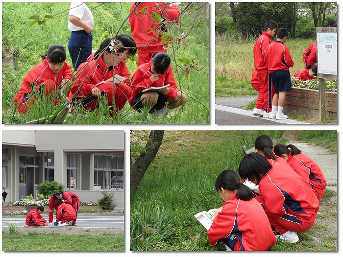 体力テストと同じ時間、1年生が植物等の観察を行っていました。
