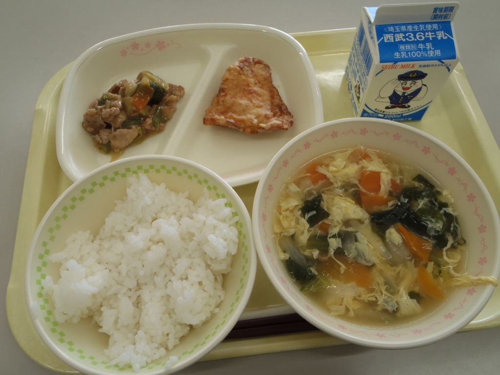⭐︎牛乳 ⭐︎ご飯 ⭐︎ホルモン揚げ ⭐︎上州サラダ ⭐︎こしね汁 今日は群馬県富岡市と深谷市の友好関係を記念した給食、「お富ちゃん給食」です。 富岡市には、世界遺産の富岡製糸場があります。渋沢栄一翁も富岡製糸場の設立に貢献しました。ホルモン揚げは...