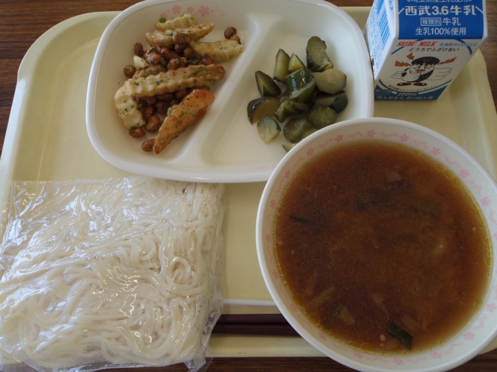 ⭐︎牛乳 ⭐︎ご飯・ふりかけのり ⭐︎さばのしょうが焼き ⭐︎切り干し大根の炒り煮 ⭐︎重忠汁 今日は重忠汁です。 重忠汁は深谷市の郷土料理で、重忠公が幼いころに、うぐいすの瀬というところで、石投げをして遊んでいたことから、白玉団子を石に見立てています。