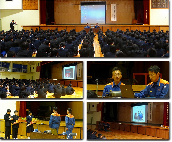 5時間目、ふれあい講演会が行われました。深谷消防署から、田中様、新井様にお越し頂き、『東日本大震災の活動報告』をしていただきました。 震災時にどのような活動をしたのか、映像や写真を交えてとてもわかりやすくお話してくれました。 地域の安全第一を目標に日々訓練しているのが伝わってきましたね。 素晴らしい講演会でした。 田中様、新井様、本当にありがとうございました。