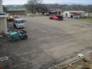 本日、体育館西側のスペースの舗装を行っています。