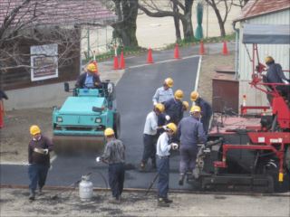 本日(31日)体育館西側スペースの舗装作業中です。