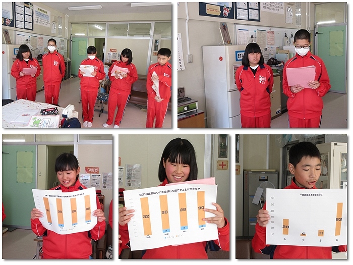 明日の4時間目にスキー教室のまとめの会が行われるため、その練習を行いました。
