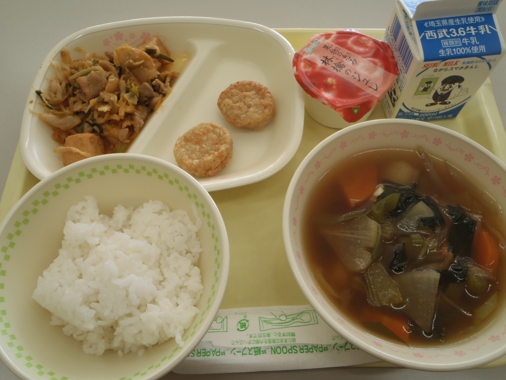 豚肉と切干のキムチ炒め けんちん汁 りんごゼリー