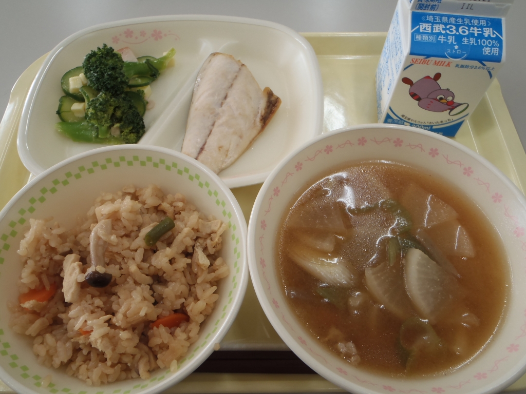⭐︎牛乳 ⭐︎ご飯 ⭐︎ホルモン揚げ ⭐︎上州サラダ ⭐︎こしね汁 今日は群馬県富岡市と深谷市の友好関係を記念した給食、「お富ちゃん給食」です。 富岡市には、世界遺産の富岡製糸場があります。渋沢栄一翁も富岡製糸場の設立に貢献しました。ホルモン揚げは...