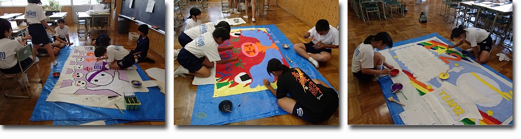 今日は1年生全クラスで応援旗を作成しました。