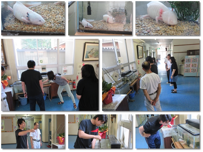 みなさんご存知のウーパーの研究をされていた岩崎先生が、南小を訪れ、ウーパーについてお話をしてきました。ウーパーは暑いところが苦手のようです。南小のウーパーはとても元気で大きかったです!