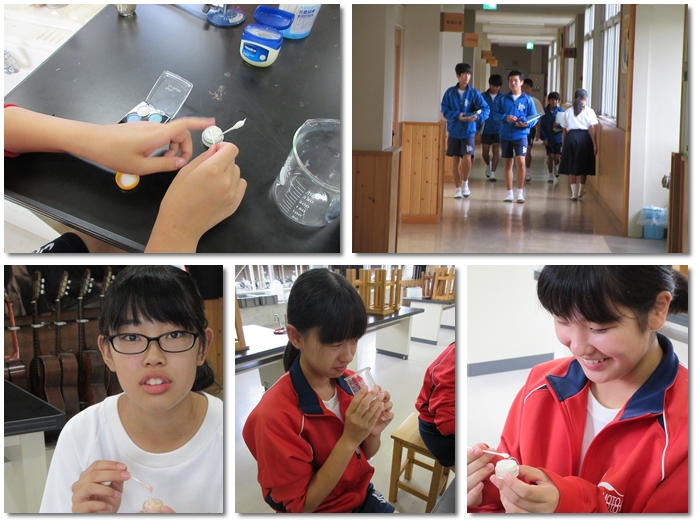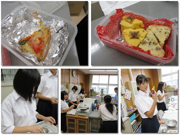 家庭科の調理実習で、ご飯とみそ汁を作りました。いつもは、炊飯器で炊いているお米も鍋で炊くことで火加減の難しさを体感していました。みそ汁では、煮干しで出汁を取りました。普段の食事も自分たちで作ると大変さを実感しているようでした。 とても美味しそうに食...