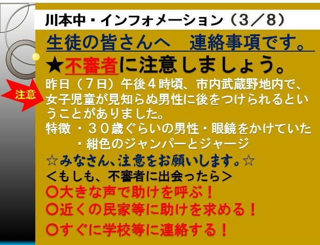 内容は、下記の通りです。生徒には、学級で指導を致しました。