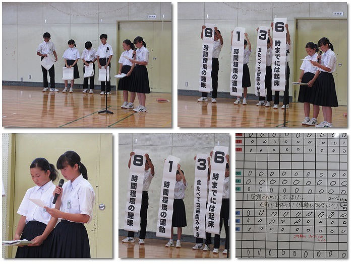 終業式で2年生保健委員より発表がありましたが、今年度「6318運動(ろくさんじゅうはちうんどう)」を実施していきます。この夏休み、「6318」を意識して生活するようにしましょう。