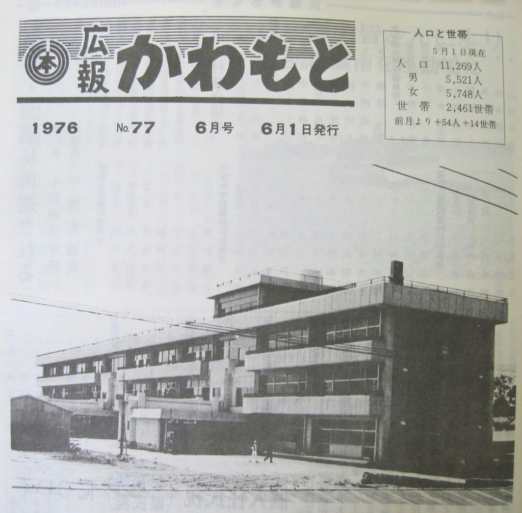◆広報「かわもと」1976.6月号の表紙を飾った創立当時の川本中学校です。