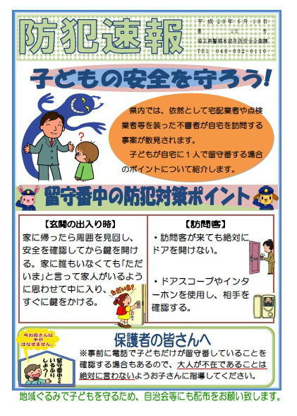 埼玉県警察本部生活安全企画課より、防犯速報がはいりました。