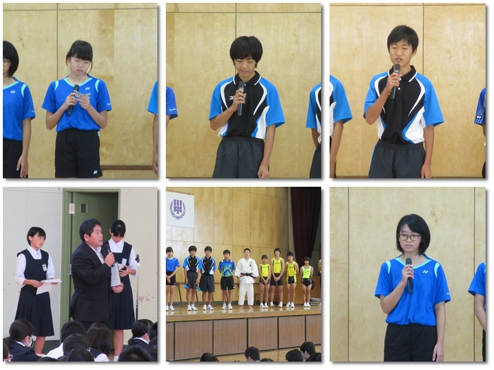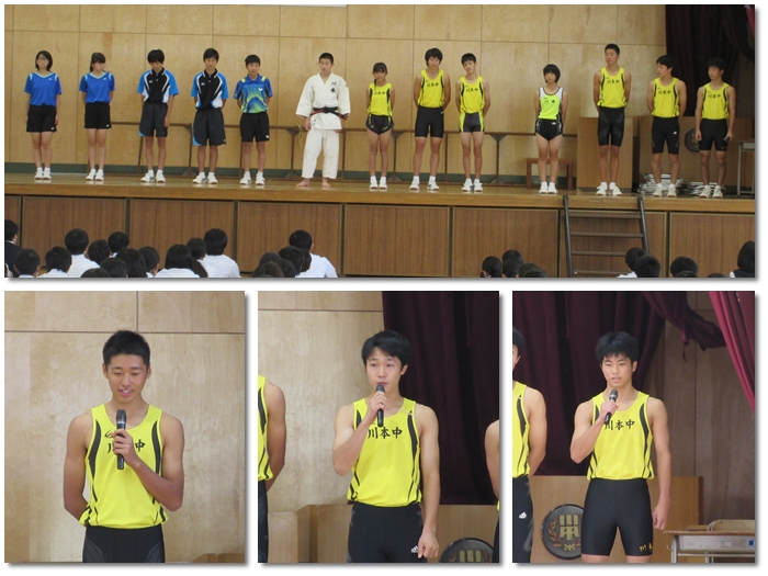 今朝は県大会壮行会が行われました。陸上競技でジュニアオリンピックに出場する人は、明日から出発となります。ご声援よろしくお願いいたします。
