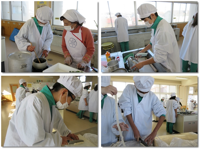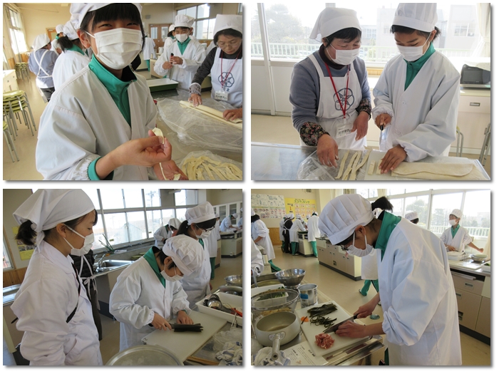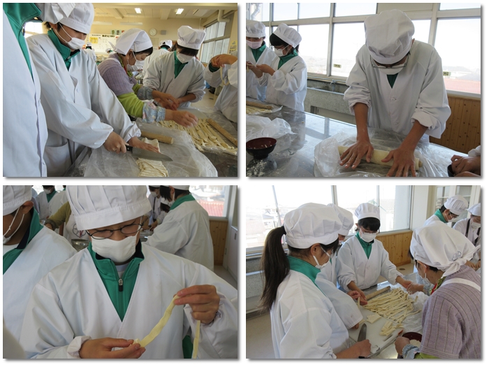 今日は1年2組のみなさんが、学校応援団の皆様とともに「にぼうとう」を作りました。みなさん、上手に手際よくすすめていました。