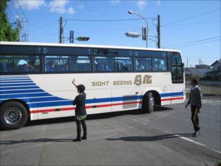 定刻に集合して、出発式を行い元気にバスに乗り込みました。