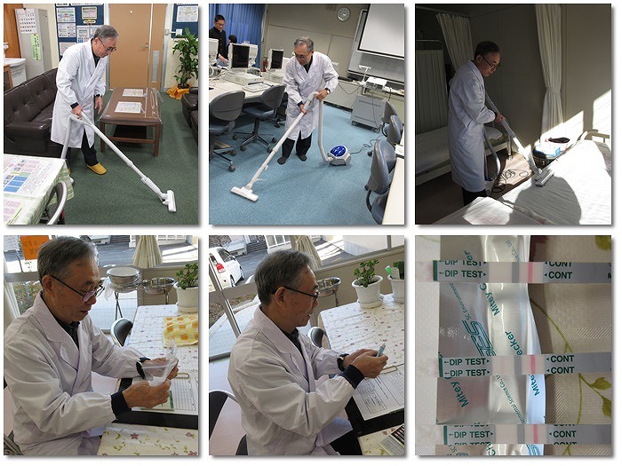 今日は学校薬剤師の須賀先生による環境衛生検査が行われました。今日はダニの検査です。床がカーペットの部屋と、保健室の布団の検査を行いました。結果は第2回学校保健委員会でお伝えします。