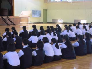 ◆他のクラスの合唱を聞き入る生徒たち