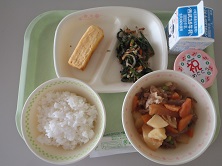 牛乳 ごはん 肉じゃが 厚焼きたまご