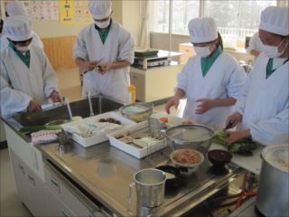 本日(27日)に実施した、1-3調理実習「煮ぼうとう」づくりの