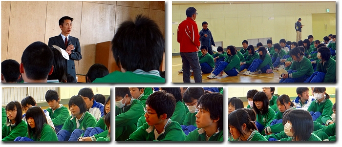 明日は85名の生徒が私立高校の受験をします。 体育館で直前指導が行われました。今までの努力を十分に発揮してきてください。 応援しています。