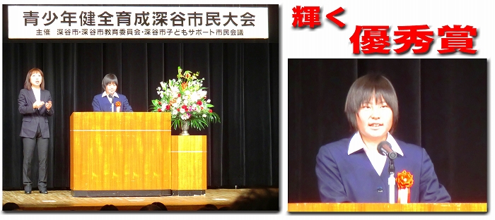 青少年健全育成深谷市民大会にて 滝上さんが優秀賞に輝く
