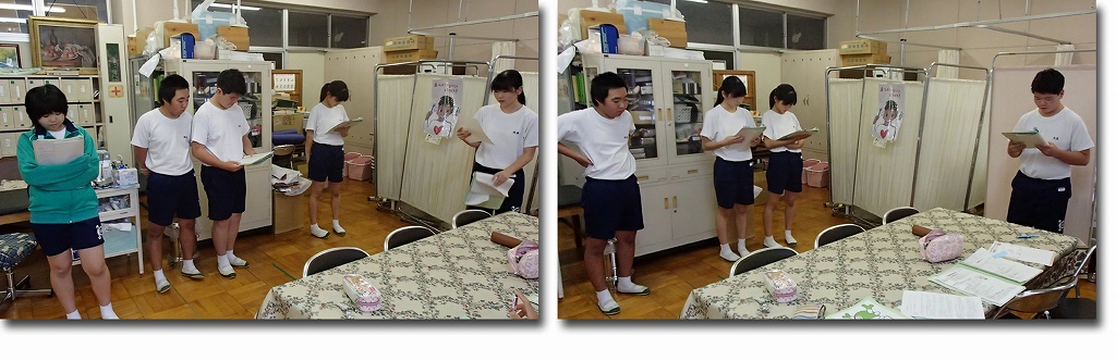 来週の月曜日に、3年生と保護者(全学年希望者)を対象に講演会が行われます。その内容の確認と練習が行われました。