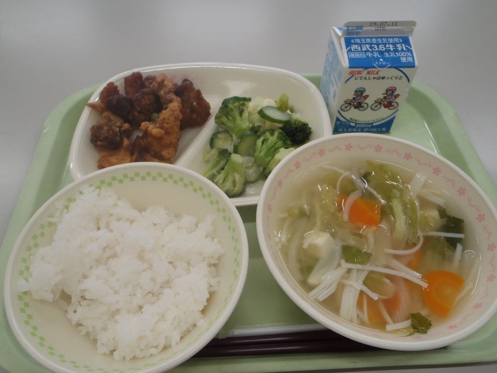 今日の給食は、もやしラーメン、手作り豆腐ドーナツ、チョレギ風サラダでした。 チョレギ風サラダは、ちりめんじゃこやのりが良いアクセントとなっていました。豆腐ドーナツも、中はサクサク、外はカリカリでとてもおいしかったです(^^)