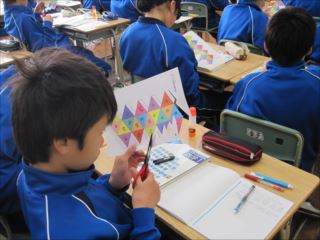 から立体を作り、図形の性質の理解を深めています。