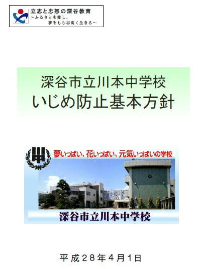 平成28年度版深谷市立川本中いじめ防止方針について