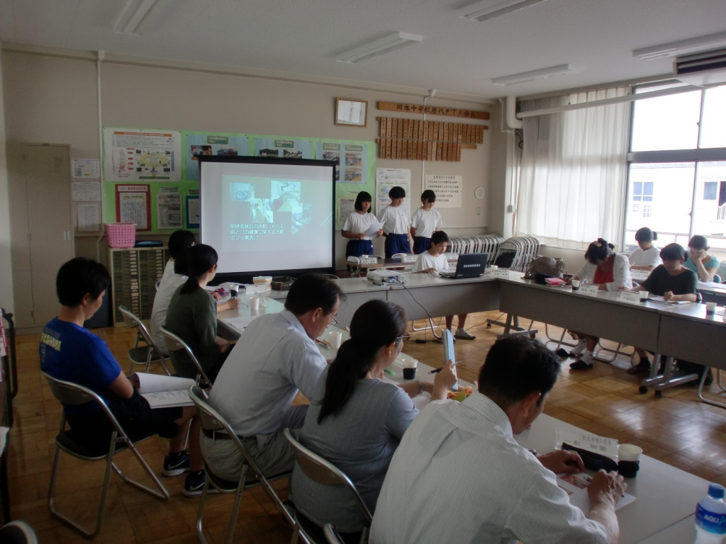 7月11日に第1回学校保健委員会が,会議室で行われました。生徒代表として,保健委員の皆さんが,中学校の健康増進における取組を,プレゼンテーションソフトを使ってわかりやすく説明してくれました。