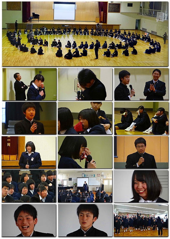 赤ジャー学年への思い、クラスへの思い、友達への思い、卒業への思い、高校への思いなど、自分の言葉で表現しました。いろいろな表現がありましたが、全員が同じ気持ちであることを確認できました。