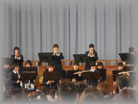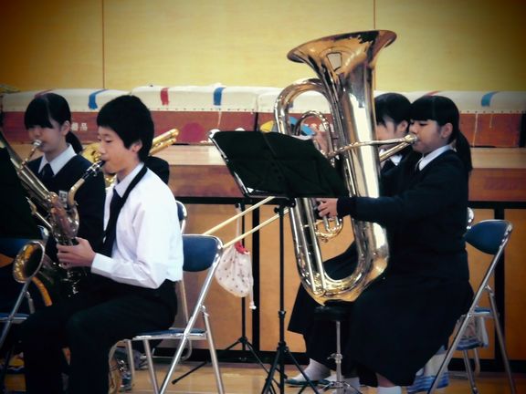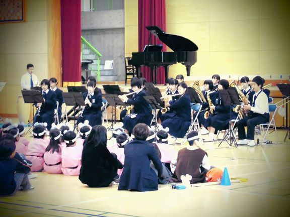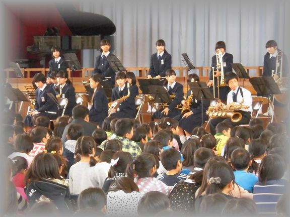 本日は小中一貫教育の一環として、川本南小・川本北小の音楽会に吹奏楽部が招待され演奏をしてきました。1年生、2年生によるフレッシュなメンバーで、元気よく演奏することができました。小学生のみなさんにも大変好評でした。