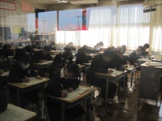 みんな真剣にテストに取り組んでいます。ガンバレ3年生!