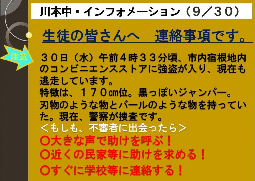 内容は、以下の通りです。保護者・地域の皆様、ご注意ください。