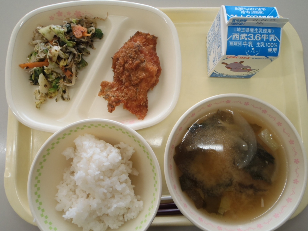 ⭐︎牛乳 ⭐︎ココア揚げパン ⭐︎ほうれん草とひじきのサラダ ⭐︎ABCスープ ⭐︎フルーツポンチ