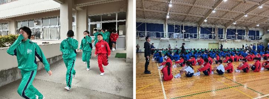 放送をよく聞き、全員がスムーズに体育館に避難することができました。