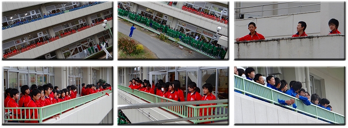 毎週月曜日は、川中名物、歌・歌うdayです。 全校生徒がベランダに出て、校歌、荒川っ子の唄を歌います。