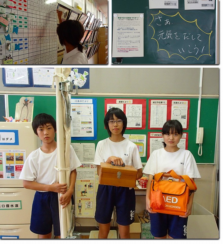 今日は休みの人や体調不良の人が多く見られました。夏休みがあけて、まだ生活リズムが整っていない人がほとんどだと思います。土日を上手に過ごし、来週は元気に登校できるようにしてください。 来週から9月、防災の日や救急の日があります。広島の大変な災害もありました。みなさんも普段から、いざという時のことを家の人と話し合うようにしてください。
