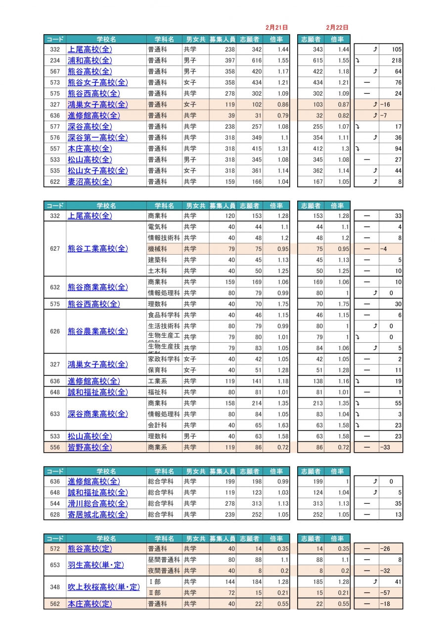 この倍率を見て、第2回の志願先変更日(2月26日(火))に備えましょう。