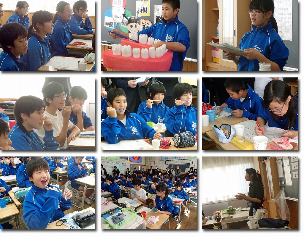 今日は多くの皆様をお迎えして、1年1組で歯と口の健康に関する授業を行いました。保健委員の皆さん、今日まで練習お疲れさまでした。とてもしっかりとできていました。また、協力してくれた1年1組の皆さん、ありがとうございました。