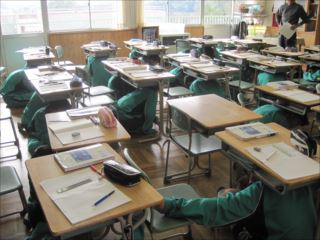 実際に緊急地震速報の際に流れる放送と指示を出して、シェ
