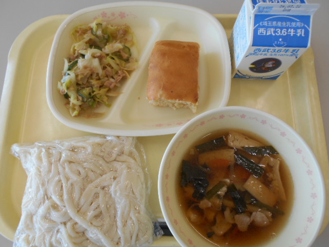 ⭐︎牛乳 ⭐︎肉うどん ⭐︎キャラメルポテト ⭐︎ほうれん草とひじきのサラダ